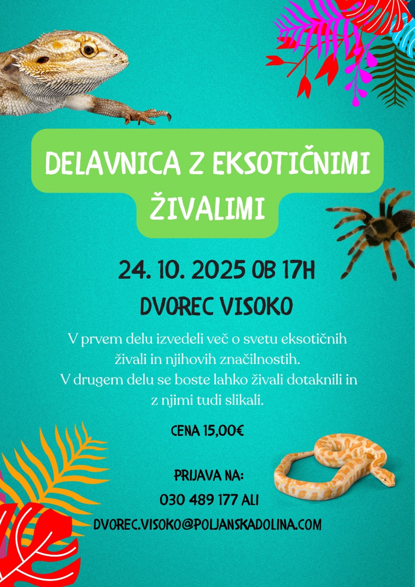 Vabimo vas na posebno dvourno delavnico, namenjeno vsem ljubiteljem živali in radovednežem, ki bi radi pobliže spoznali svet eksotičnih živali.