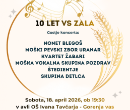 Vokalna skupina ZALA vas prisrčno vabimo na večer prepleten z glasbo, harmonijo in prijetnim vzdušjem.