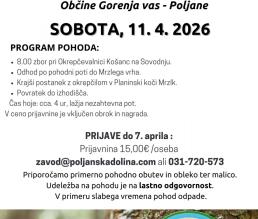 Obvezne predhodne prijave do petka 17. aprila na jure@poljanskadolina.com ali 051-200-890.