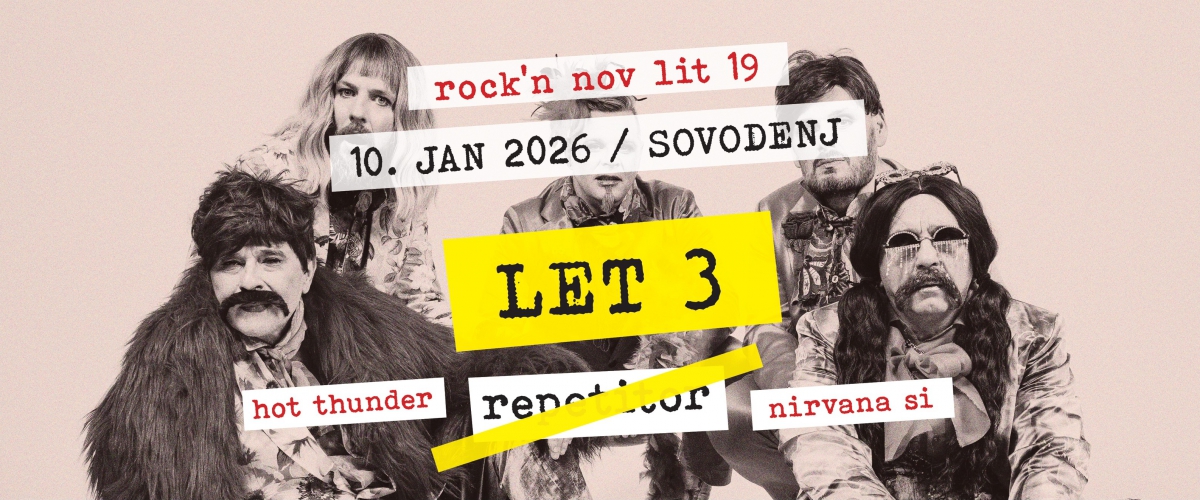 Tokrat bodo dvorano na Sovodnju zatresli trije trii: belokranjska mlada nada Hot Thunder, reške legende Let 3 in slovenski poklon grunge božanstvu Nirvana Si!