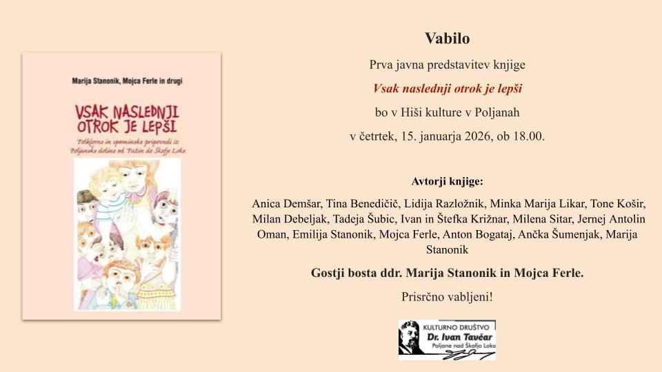 Vabljeni na prvo javno predstavitev, ki bo potekala v Hiši kulture v Poljanah v četrtek, 15. januarja 2026, ob 18. uri.