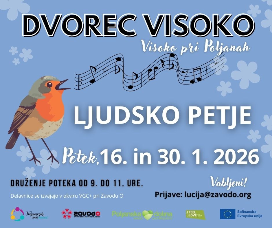 V petek 16. in 30. januarja ob 9. uri vas v sodelovanju z zavodom o vabimo na Dvorec Visoko, kjer bodo potekale delavnice ljudskega petja.