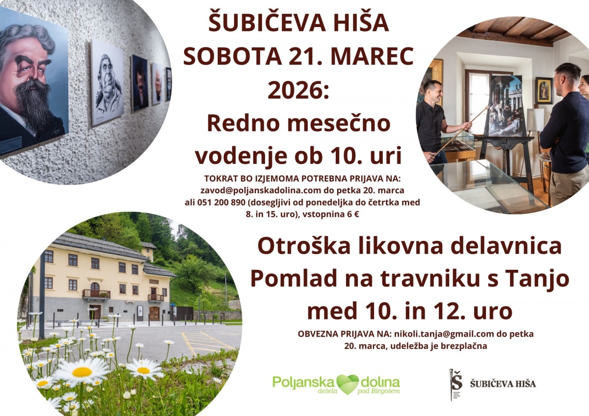 Tokrat bo izjemoma vodenje le po prijavi na jure@poljanskadolina.com na 051 200 890 do 20. marca.
