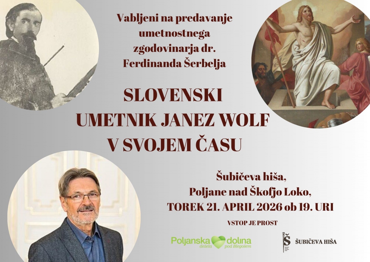 Spoznali bomo življenje in delo slikarja Janeza Wolfa (1825–1884), pomembnega ustvarjalca nabožnih podob v oljni tehniki in izjemnega freskanta slovenskih cerkva. Predavanje bo osvetlilo tudi njegovo vlogo mentorja mlajši generaciji umetnikov, med katerimi izstopajo Janez in Jurij Šubic ter Anton Ažbe.