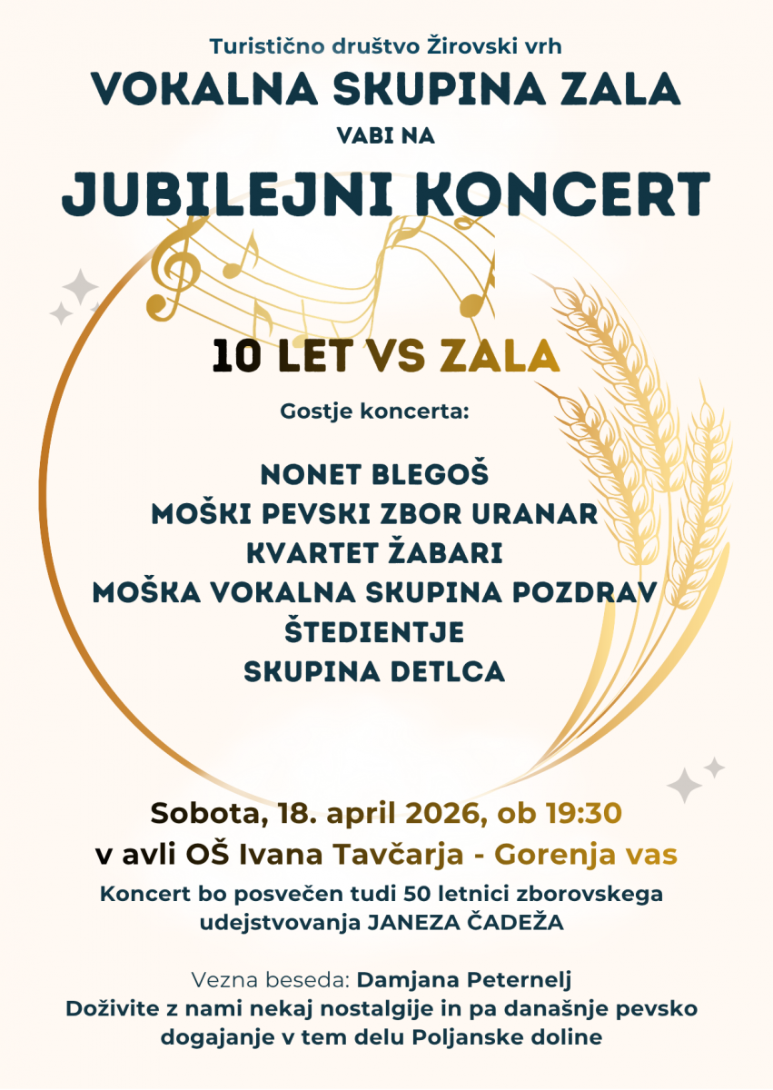 Pridružite se nam na koncertu petja in glasbe, kjer bomo skupaj ustvarili nepozaben pomladni večer.